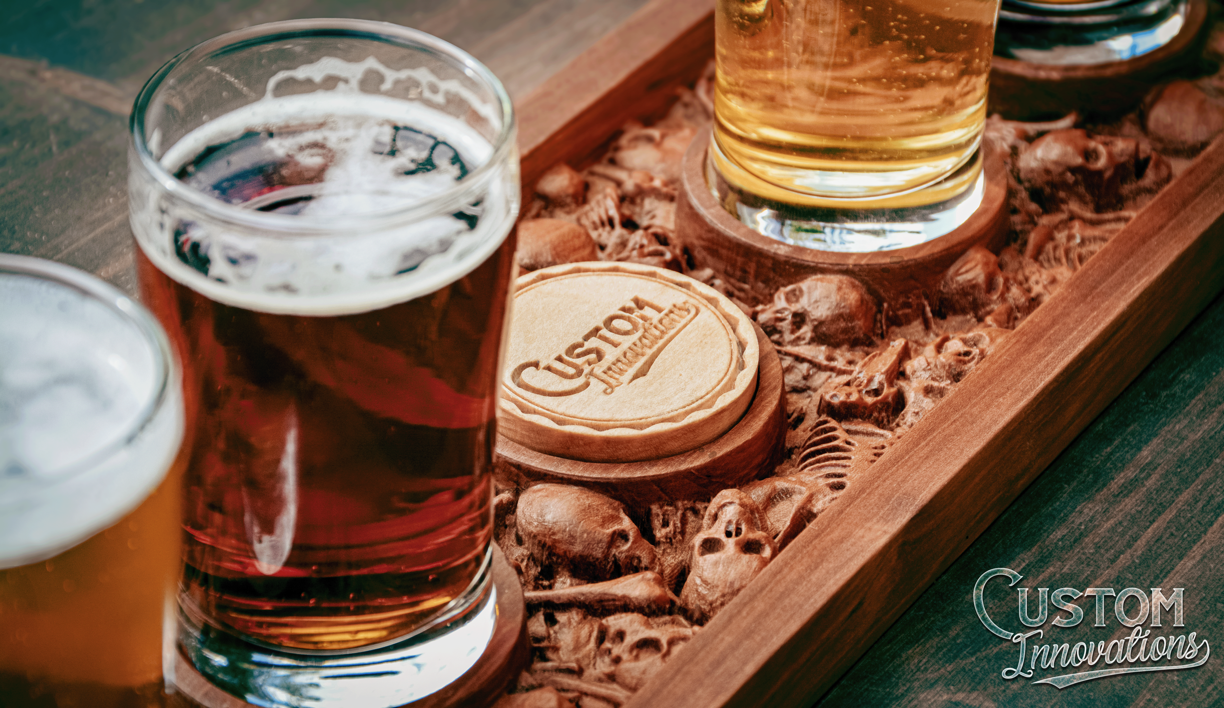 Our latest addition to the Custom Innovations product line is the charming little brother to the infamous Boneyard Beer Flight.